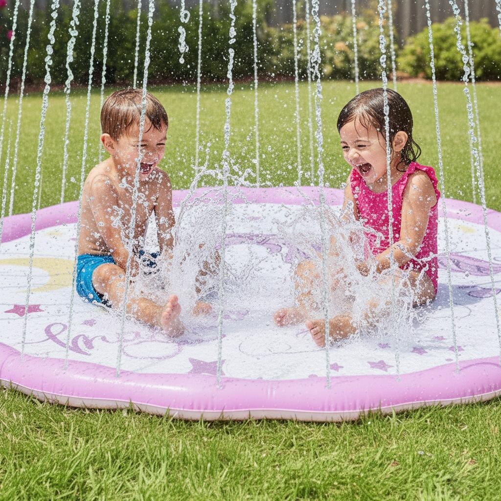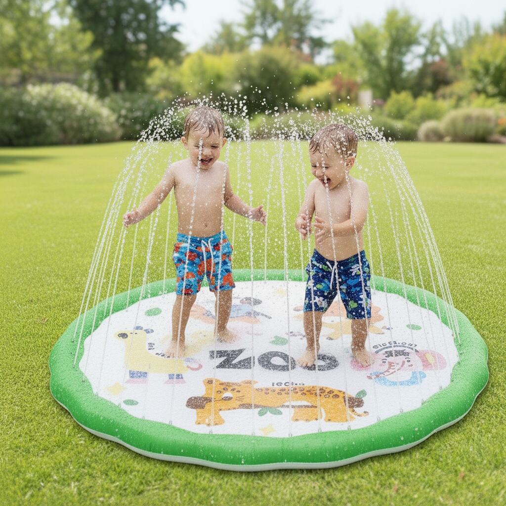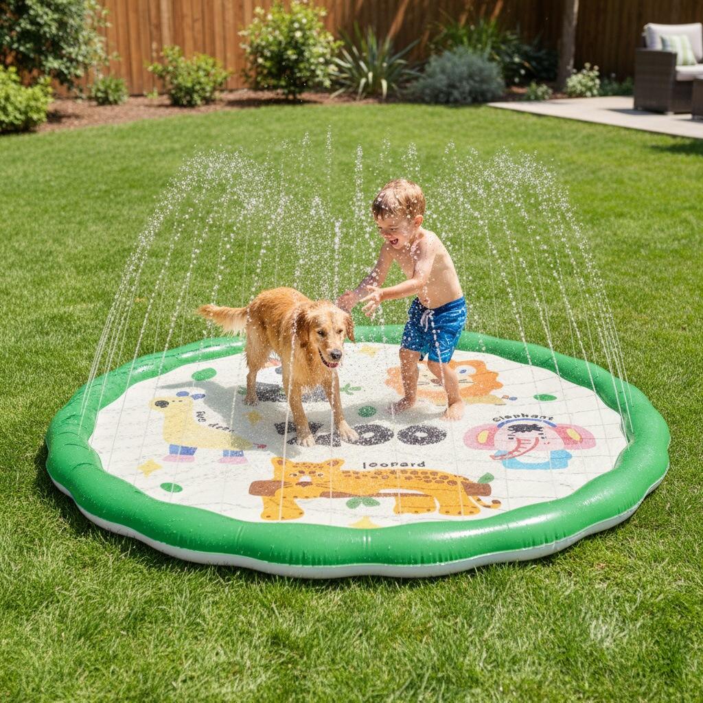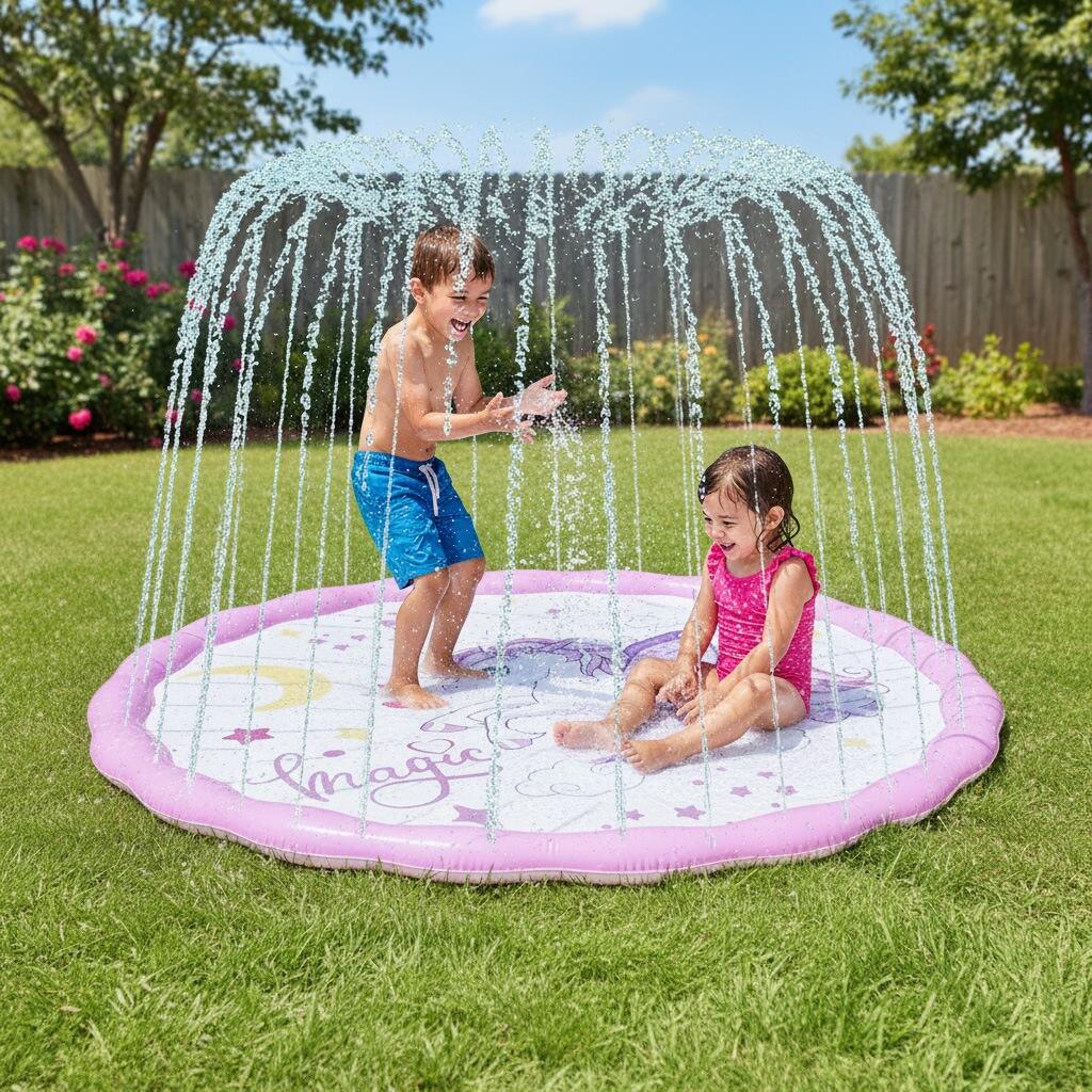 | Grote spatspeelmat voor peuters | Duurzame buitenwaterspeeltjes | Eenvoudig op te zetten spatspeelmat | Perfecte buitenwaterspeeltjes |